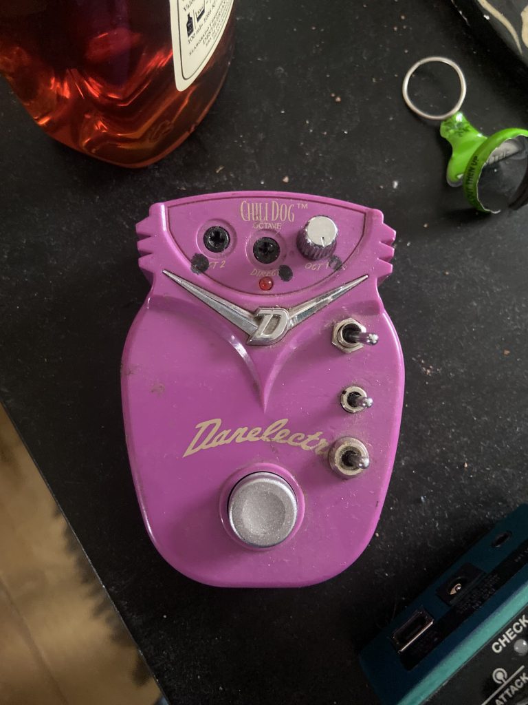 In the time researching schematics for basic oscillator circuits I’ve learnt more about the use of capacitors, resistors and transistors in audio equipment and the ways they mould and effect the sound they produce/effect. This gave me the idea to circuit bend a few more guitar pedals but now with more of a understanding of what I’m doing. The three switches you see on the octave pedal each control a different bend. I decided to bend a octave down pedal for the idea that could possibly replace a resistor with a variable resistor to create a pitch bend. This somewhat didn’t go to plan, I ended up adding a link from the two octave potentiometers to a transistor which seemed to be part of a boost circuit built in. between the link was the switch, when turned on the effect would be a pitch shifting sequencer effect, very similar to a glitchy arpeggiator, which would also react with the amplitude spikes from the input. The second bend was a basic feedback loop running between the input and output and octave down potentiometer. The third bend is a bit-crush almost sound which I’m completely happy with even though I was aiming for a overdrive/distortion. I achieved this by taking a link from the power output running into the LED and skipping a resistor, which was part of the boost circuit and linking to the main volume knob of the pedal. This third bend is most likely damaging the pedal but the effect it creates is to cool to care about the damage.